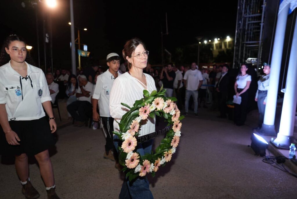 את זר ארגון אלמנות ויתומי צה"ל הניחה אלמה לוין פרידמן, אלמנתו של רס״ן (במיל׳) איתמר לוין פרידמן ז״ל שנפל בנובמבר 2024 בעזה.