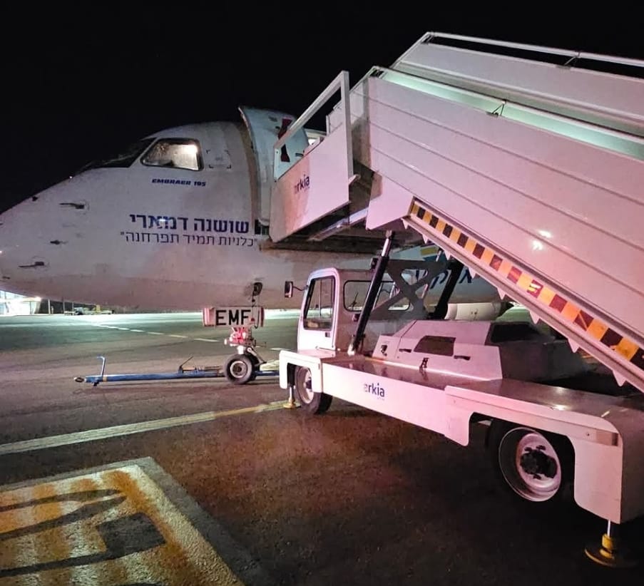קברניט מטוס ארקיע הודיע לנוסעים כי כעת מנסים להביא רכב לחלץ את מוט הגרירה מתחת למטוס. הנוסעים הורדו בחזרה לטרמינל ברמון – אילת.