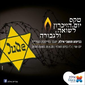 טקס יום הזיכרון לשואה ולגבורה יתקיים ביום רביעי, 7.4.2021 בשעה 20:00 ברחבת האמפי סמוך לבית פיליפ מוריי. בשל מגבלות הקורונה, הכניסה לטקס למוזמנים בלבד, בהתאם להנחיות התו הירוק. כיסאות לשורדי השואה ובני משפחותיהם יישמרו בשורות הראשונות. הטקס יועבר בשידור ישיר בפייסבוק עיריית אילת.